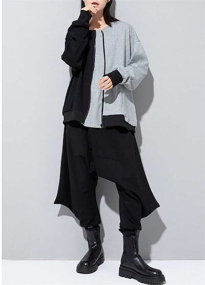 ジップデザイントップス スウェット レディース 長袖 スウェット トレーナー プルオーバー 配色 変形デザイン アシンメトリー 無地 モード系 個性的 大人 カジュアル メンズ ユニセックス ビッグシ