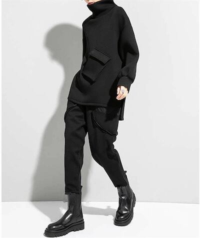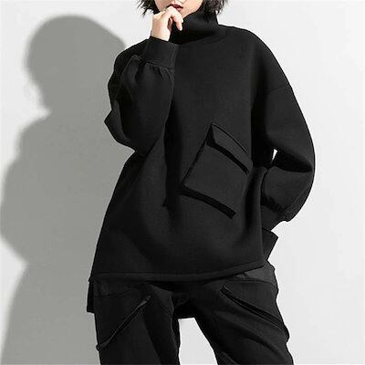 ハイネック スウェット レディース トップス 長袖 スウェット トレーナー プルオーバー 裾変形デザイン アシンメトリー 無地 モード系 個性的 大人 カジュアル メンズ ユニセックス ビッグシルエッ