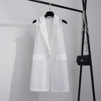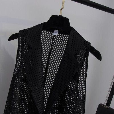 ベスト ロングベスト レディース メッシュ 夏 涼しい ノースリーブコート 透け感 トップス 袖なし フォーマル コーディネート スーツベスト オシャレ