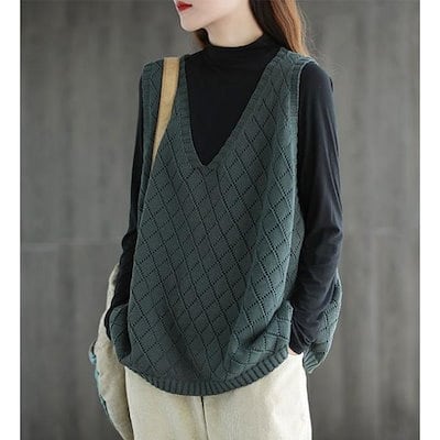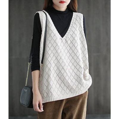 ニットベスト ベスト レディース 春 秋 40代 ニット タンクトップ トップス vネック 透かし編み 薄手 重ね着 ベストノースリーブ タンク 春コーデ