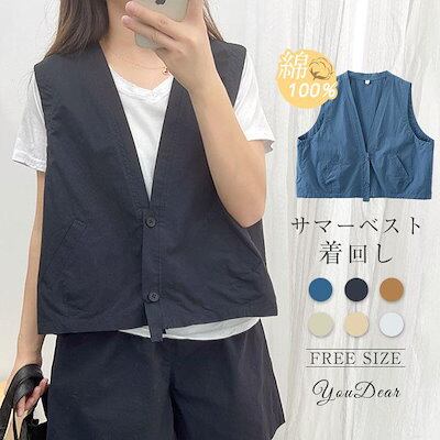 ベスト レディース 前開き vネック シンプル ナチュラル ショート丈 羽織 おしゃれ 大きいサイズ ジレベスト サマーベスト 春 無地 レイヤード風 大人