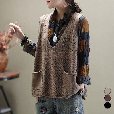 ベスト レディース Vネック ニットベスト ニット 秋 冬 40代 ノースリーブ きれいめ 大きいサイズプルオーバー ゆったり ニットトップス