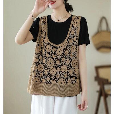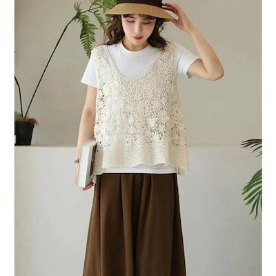 透かし編み ベスト レディース 春 夏 ニットベスト かぎ編み 涼やか カジュアル レイヤード ニットベスト ノースリーブ サマーニット おしゃれ きれいめ