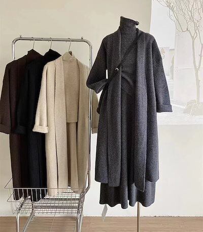 【2枚購入で 2oo円OFF!】人気なリプニット 秋冬 新作 3点セット 上下セット おしゃれ 気質 レディースセットアップ カジュアルゆったり 通勤 ニット アウター セーター ニットスカート