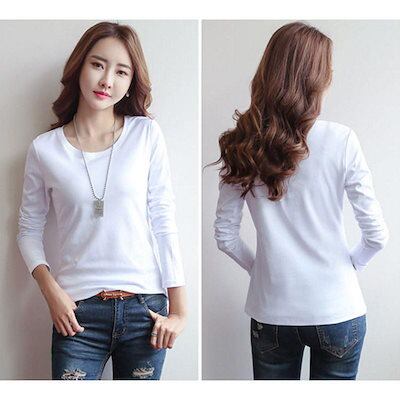 2点ご購入で10%OFF!長袖Tシャツ レディース クルーネック tシャツ インナー ロングtシャツ トップス スリム カットソー 速乾 無地 シンプル 6色