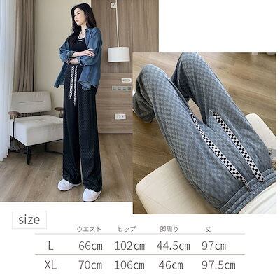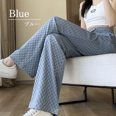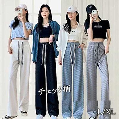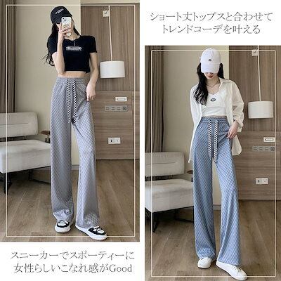ワイドパンツ レディース チェッカー ジャージ ストレートパンツ デザイン ウエストゴム リラックスパンツ イージーパンツ チェック柄 美脚シルエット ボトムス 大きいサイズ フリーサイズ ルーズパン