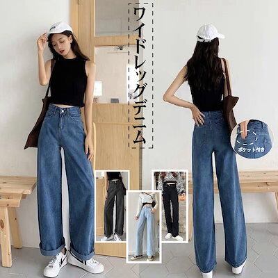 クーポン使用で/ ジーンズ ワイドパンツ レディース 春 夏 秋 冬 ハイウエストジーンズ 美脚 バギーパンツ カジュアル デニムパンツ