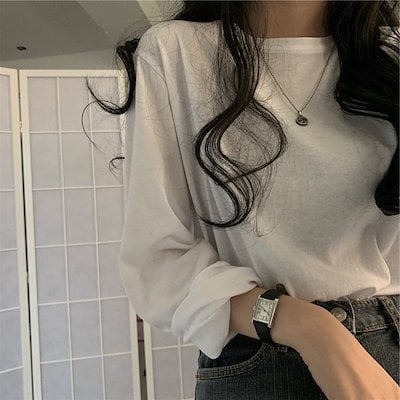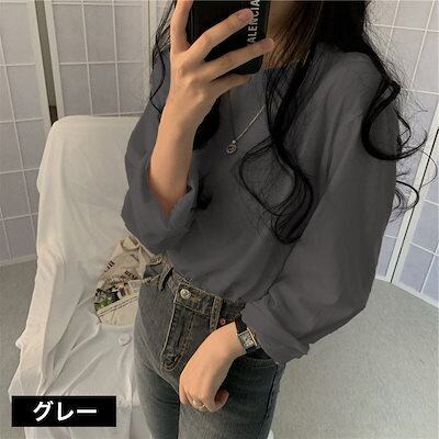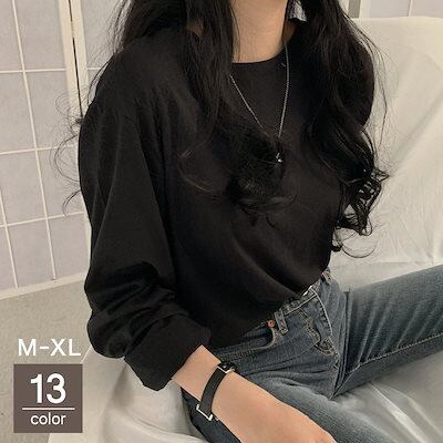 ロングTシャツ ロンT 長袖 レディース トップス カットソー クルーネック 丸首 プルオーバー 無地 単色 シンプル 着回し 定番 ベーシック カジュア
