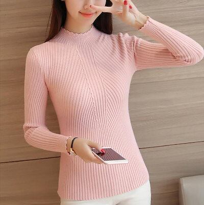 クーポン レディース 韓国ファッション トップス セーター ニット スカラップ ロングスリーブ ハイネック 細身 暖かい 普段着 フォーマル ホワイト ピンク グレー Fサイズ