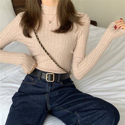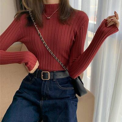6色 ニット トップス レディース プルオーバー セーター ハイネック 薄手 萌袖 重ね着 スリム タイト リブ インナー カジュアル 定番 長袖 大人可愛い 普段着 着回し コーデ お洒落 アイテム
