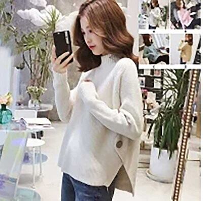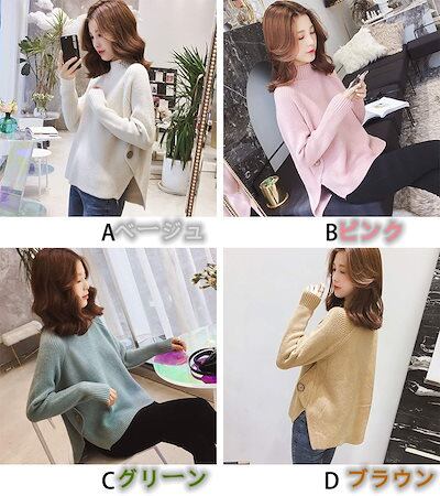 ニット セーター レディース 長袖 トップス ハイネック ニットセーター プルオーバー チュニック丈 スリット目 アシンメトリー 不規則 春秋服 ゆったり 体型カバー ファッション 大人 おしゃれ き