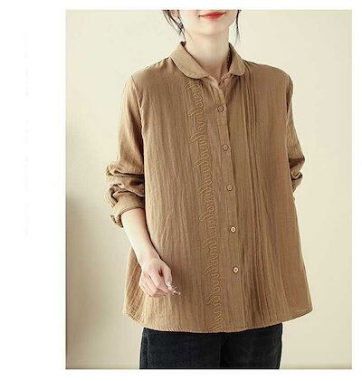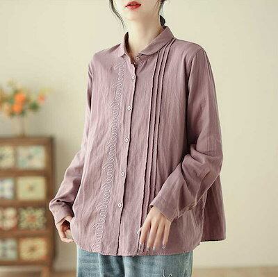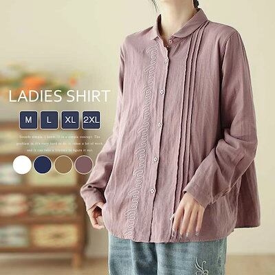 シャツ レディース 長袖 ブラウス 刺繍 シャツブラウス ブラウス チュニック 長袖シャツ おしゃれ きれいめ 通勤 オフィス カジュアル シンプル 大人 可愛い ビジネス 白 ホワイト ネイビー キ