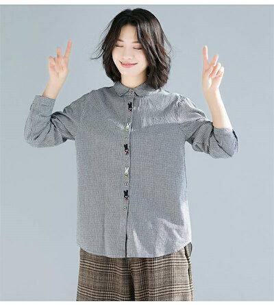 シャツ レディース 長袖 チェック柄 シャツ ブラウス 秋 トップス 綿混 シャツ チェック 刺? 大人可愛い 大きいサイズ ゆったり 体型カバー カジュアル 柔らか おしゃれ 森ガール 着回し 体型