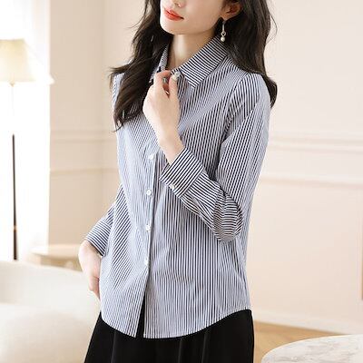 シャツ レディース 長袖 ブラウス ストライプ シャツブラウス オフィスカジュアル ストライプ柄 春秋 通勤 オフィス OL おしゃれ ゆったり オシャレ スーツインナー ベーシック 定番 大人 フォ