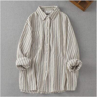 シャツ ストライプ レディース 長袖 ブラウス トップス ビッグシルエット シャツチュニック 綿麻風 ゆったり 大きいサイズ 体型カバー カジュアル 大人 可愛い キレイめ おしゃれ 通勤 着痩せ 春
