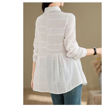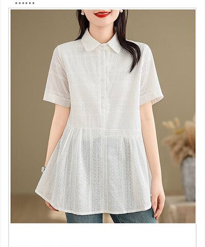 ブラウス レディース シャツ 半袖/長袖 透け感 夏 春秋 シャツブラウス トップス ゆったり レース 裾フレア 無地 透かし 大人 かわいい おしゃれ きれいめ 通勤 オフィス エレガント フェミニ