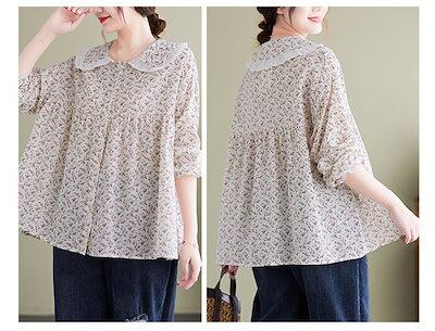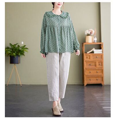 ブラウス レディース 花柄 レース襟 長袖 シャツブラウス 総柄 春秋 綿麻風 ブラウスチュニック ゆったり カジュアル ナチュラル 森ガール かわいい おしゃれ 体型カバー エレガント 大きいサイズ