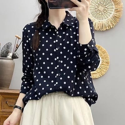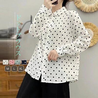 ブラウス レディース 長袖 シャツ ドット ガーゼ シャツブラウス 水玉 ブラウスチュニック 春秋 トップス ゆったり カジュアル ナチュラム シンプル オシャレ 大きいサイズ 可愛い 着?せ 大人可