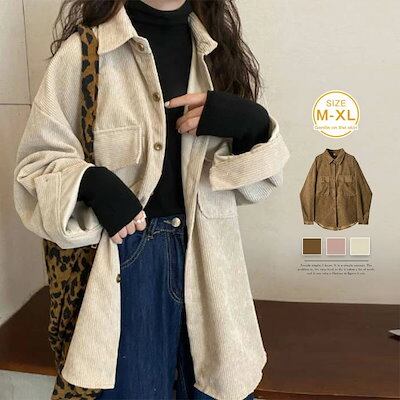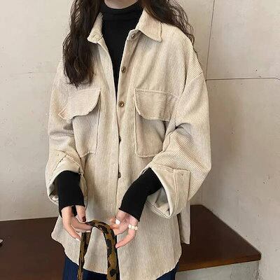シャツ レディース 厚手 長袖 ブラウス トップス アウター カーディガン 大人 秋新作 コーデュロイコート 秋 冬 大きいサイズ ゆったり 羽織 ゆる大人カジュアル 通勤 ol オフィス 可愛い キ