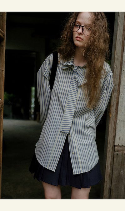 ボウタイ ブラウス ストライプ シャツ レディース 長袖 トップス シャツブラウス ストライプ柄 リボン ブラウスチュニック 体型カバー カジュアル 大人可愛い キレイめ おしゃれ 通勤 オフィス 仕