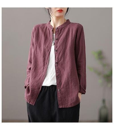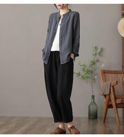 ブラウス レディース シャツ 長袖 綿麻風 無地 カーディガン 羽織り トップス シャツブラウス バンドカラー アウター 大きいサイズ ゆったり 体型カバー カジュアル ナチュラル シンプル ゆったり