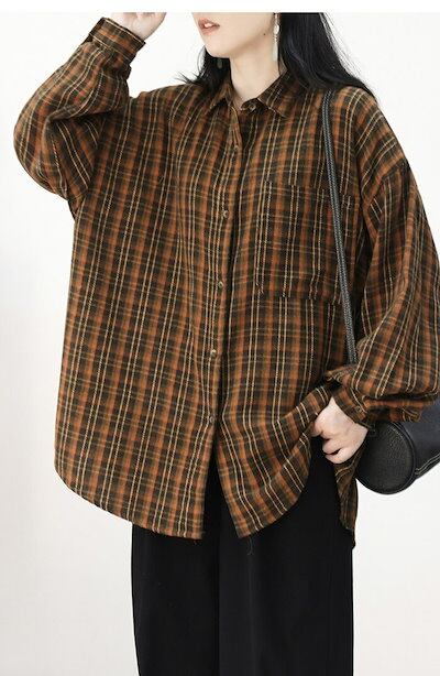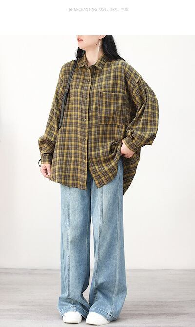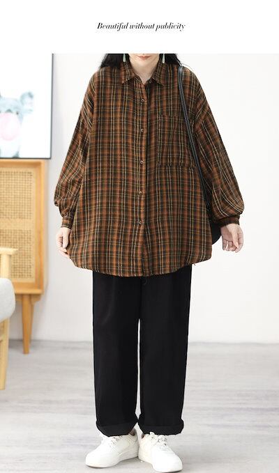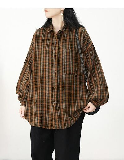 綿シャツ レディース 秋冬 長袖 タータンチェック ブラウス ロングシャツ 春秋 チュニック ワイシャツ 大きいサイズ ゆったりきれいめ フ カジュアル 大人可愛い おしゃれ ゆったり 無地 体型カバ