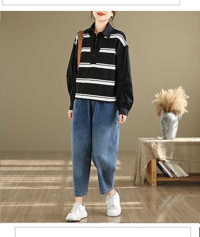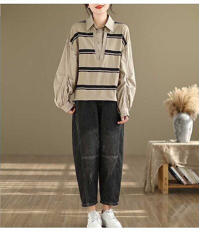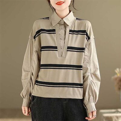 シャツ レディース ブラウス ボーダー 長袖 チュニック トップス プルオーバー 異素材 切替 ドッキング シャツブラウス ボーダー柄 通勤 キレイめ オフィス 仕事 OL ゆったり カジュアル ベー