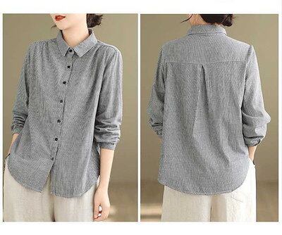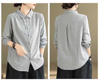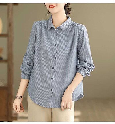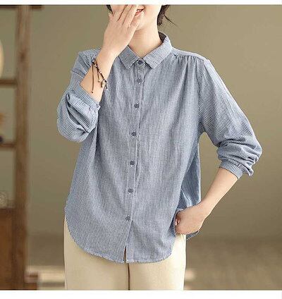 シャツ レディース 長袖 ガーゼ ブラウス ストライプ シャツブラウス ストライプ柄 ブラウスチュニック ダブルガーゼ トップス 春秋 大きいサイズ ゆったり カジュアル 森ガール 通勤 仕事 フォー