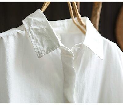 コットンシャツ 長袖 レディース 春秋 シャツ ストライプ柄 前開き コットン 綿シャツ 白シャツ 大人可愛い ナチュラル 森ガール トップス 通勤 OL 通学 ビジネス キレイめ カジュアル シンプ