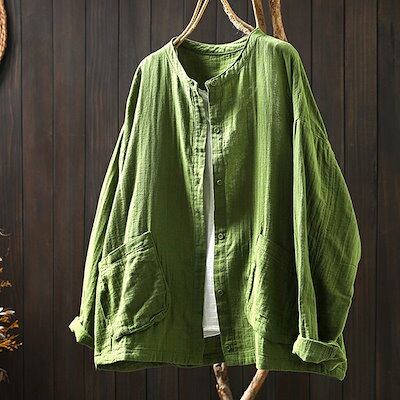 シャツ レディース コットンシャツ 長袖 春秋 ブラウス トップス ナチュラル チュニック 大人可愛い 大きいサイズ ゆったり ファッション オシャレ 通勤 カジュアル シンプル 秋冬 ブルー グリ