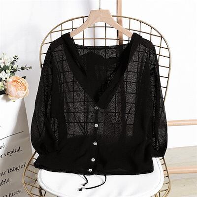 ニット カーディガン レディース カーデ ショート丈 サマーニット フード付き 大きいサイズ 長袖 冷房対策 オフィス 薄手 Vネック トッパー トップス 羽織り UV対策 紫外線対策 無地 夏 ブル