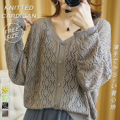 ニットカーディガン カーディガン レディース ゆったり サマーニット 綿 Vネック 透け感 薄手 アウター トップス 春 夏 秋 コットン おしゃれ カジュアル 無地 可愛い サマー