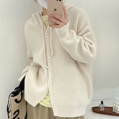 ニットカーディガン レディース 秋 ニット カーディガン 長袖 ニパーカートップス ベーシック カジュアル 柔らか きれいめ ゆったり ボタン付き 大人可愛いフェミニン ブラック ホワイト イエ