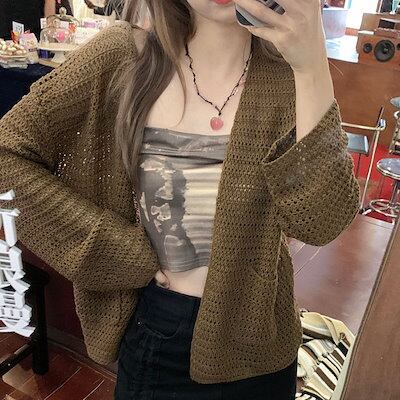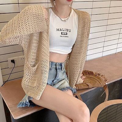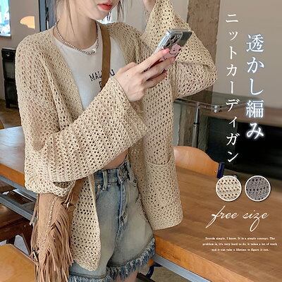 カーディガン レディース ニットカーディガン 薄手 長袖 透かし編み サマーカーディガン 無地 カーデ ショート丈 羽織り トップス 透け感 UV対策 冷房対策 大人 シンプル きれいめ カジュアル