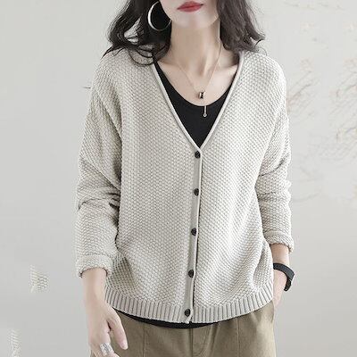 ニット カーディガン レディース ニット レディース トップス カーデ 羽織り Vネック 長袖 大きいサイズ ゆったり 春 秋 冬 ニットカーディガン ゆったり 前開き 体型カバー 大人 シンプル