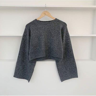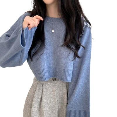 ニットセーター 秋セーター女性ルーズ半長袖ラウンドネックプルオーバーニットトップス