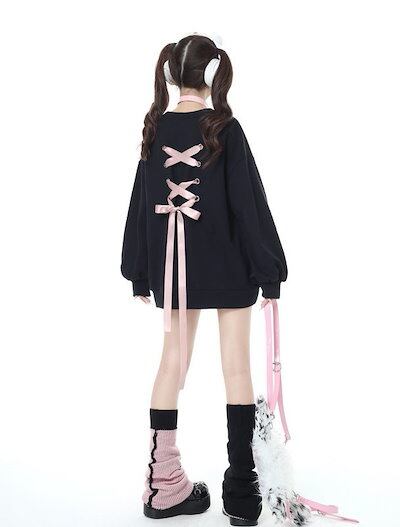 パーカー 愛の蝶ネクタイのトレーナーの女性の秋と冬の緩い学生の長袖トップス