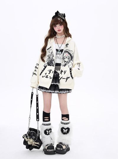 ジャケット サブカルチャーダークガールゆったりレジャー百フード付きジャケット初秋新作