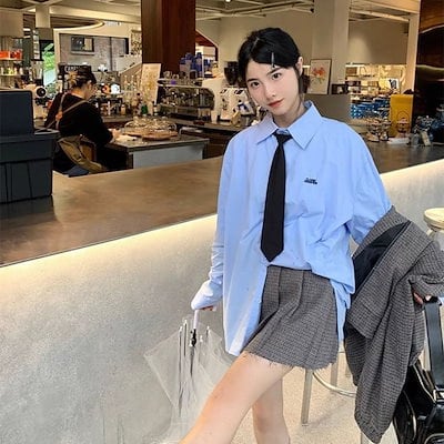 今っぽシアーシャツ 新しい百カレッジスタイルシャツルーズ刺繍ブラウストップス