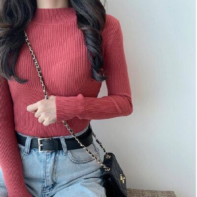 ベーシックニット 2024年秋スリム長袖ニットトップスの中のハーフハイネックジャンパー女性ボトミングシャツ