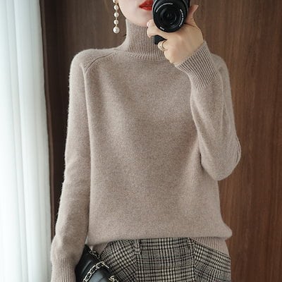 ベーシックニット 2024秋の新しい緩いプルオーバーニットセーターハイネックジャンパー女性のトップスボトムシャツ