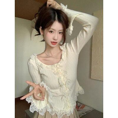ニットカーディガンレディース秋2024新しいスリムショートパラグラフスプライシングレーストップス