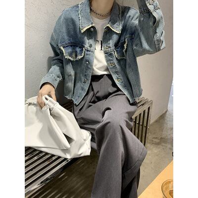 コーデに役立つ!デニムジャケット ヴィンテージ生エッジデニムジャケット女性ルーズ多用途ショートジャケットトップスコートジャケット