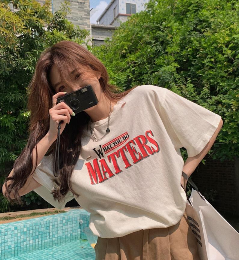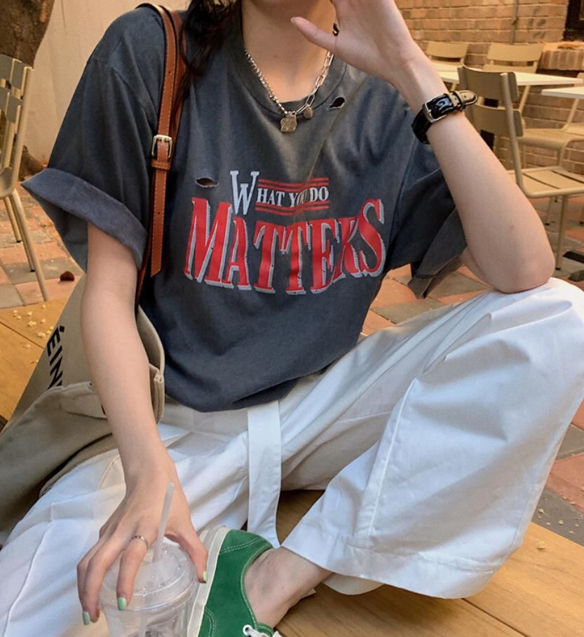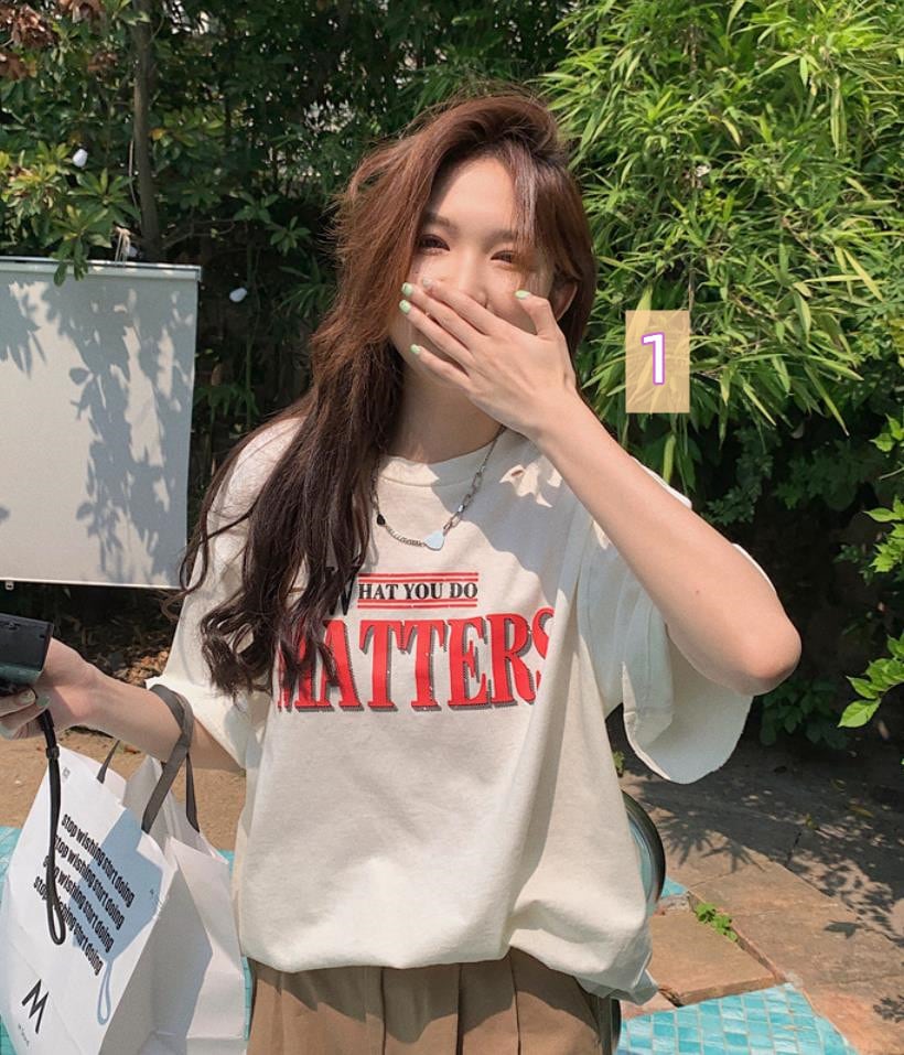 2022春夏新作 レディース 女 プリント 丸首 半袖 Tシャツ トップス インナー 2色