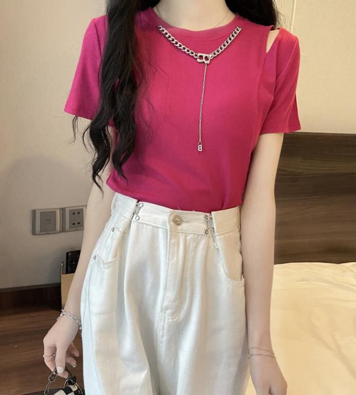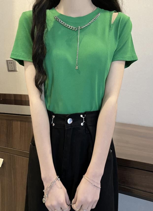 2022春夏新作 レディース 女 半袖 丸首 無地 Tシャツ トップス インナー 5色