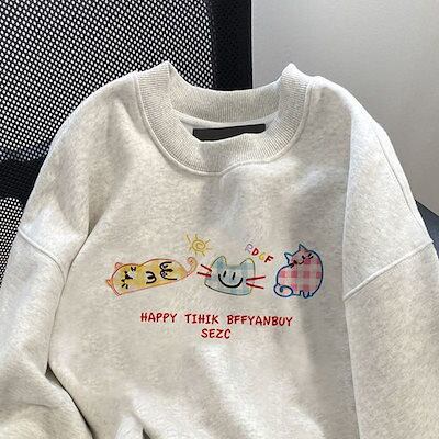 パーカー カートゥーン・キャット・ラウンドネック・スウェット秋冬フードレストップス