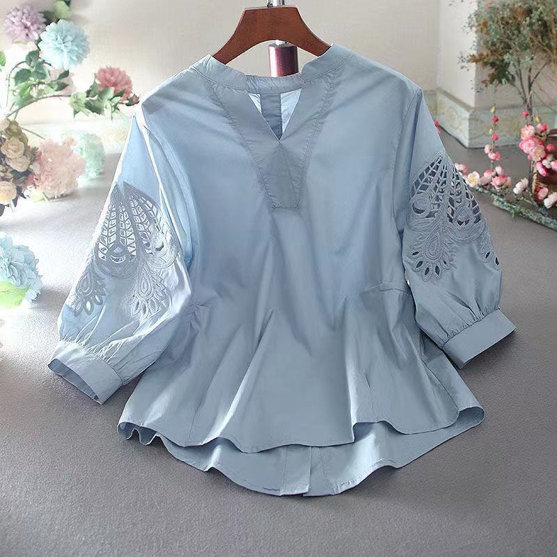 2024年夏新作 ブラウス シャツ 刺繡ブラウス トップス レディース Vネック 気質 オシャレ