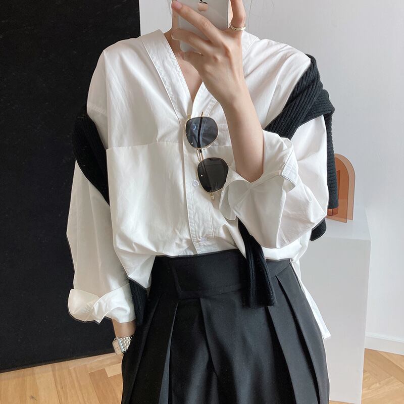 ブラウス 2024年秋新作 シャツ トップス レディース 人気シャツ 着回し 気質 Vネック