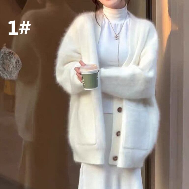 ふわふわ カーディガン レディース ニット トップス 秋冬新作 Vネック 長袖 カーデ 大人 おしゃれ
