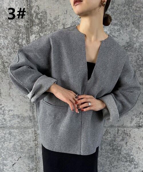 秋冬新作 コート ウール アウター トップス レディース Vネック 気質 オシャレ 不規則デザイン